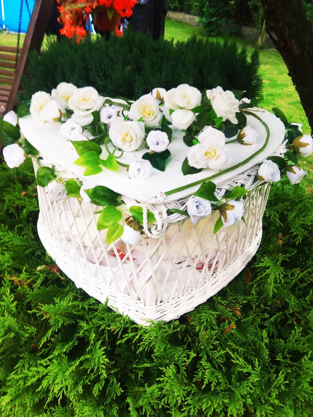 – 2 gołębie z rąk Pary Młodej +6 gołębi z białego kosza w kształcie lub